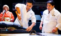 Posebna poslastica bili su japanski sushi majstori koji su pripremali i za degustaciju odmah nudili sushi specijalitete izrađene pred posjetiteljima od svježe tune...