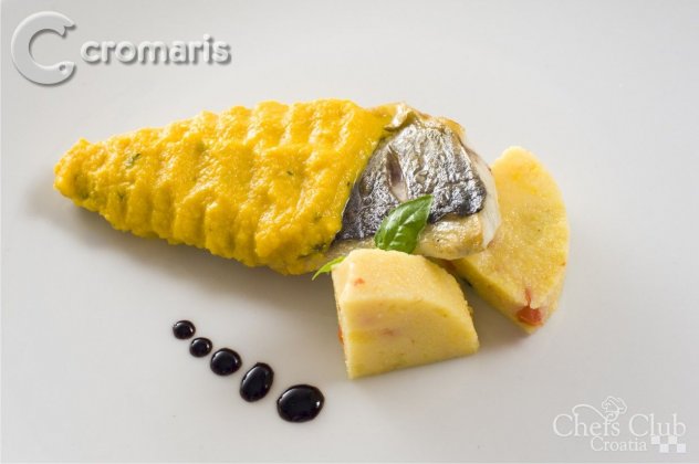 Izradimo štapnim mikserom u pire, polako dodajemo malo vrhnja za kuhanje dok pjenica ne postane krepka i baršunasta.Gustoću pjenice određujemo sami. Brancina serviramo na tanjur, 3/4 zatvorimo pjenicom.