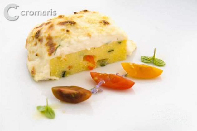 Puru skuhamo u ribljem temeljcu, te je aromatiziramo svježom crvenom paprikom i tikvicama sjeckanim na male kockice. Izlijemo je u pogodan lim za pečenje.