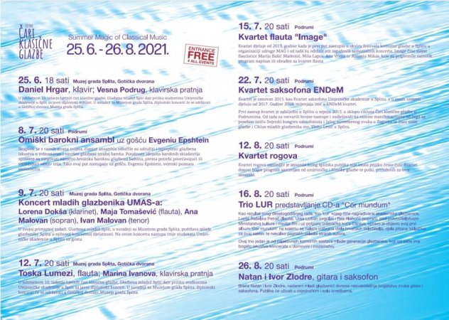 Na jubilarnim 10.Ljetnim čarima klasične glazbe 22.7.2021. u 20h u podrumima Dioklecijanove palače nastupa kvartet ENDeM.