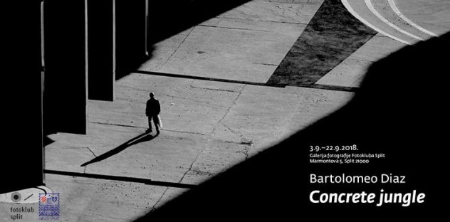 U ponedjeljak, 3. rujna 2018. u 20h u Galeriji fotografije Fotokluba Split, Marmontova 5, otvara se izložba mladog splitskog fotografa Bartolomea Diaza pod nazivom "Concrete jungle" kojem je ovo ujedno i prva samostalna izložba.