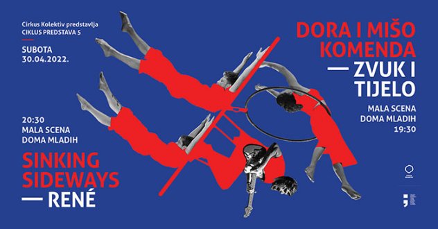 Cirkus Kolektiv – udruga za suvremeni cirkus i srodne umjetničke prakse, kroz ovogodišnji peti Ciklus predstava suvremenog cirkusa u travnju dovodi dva dueta: nizozemsku kompaniju Sinking sideways s predstavom René i domaće snage Doru i Mišu Komendu s predstavom Zvuk i tijelo.