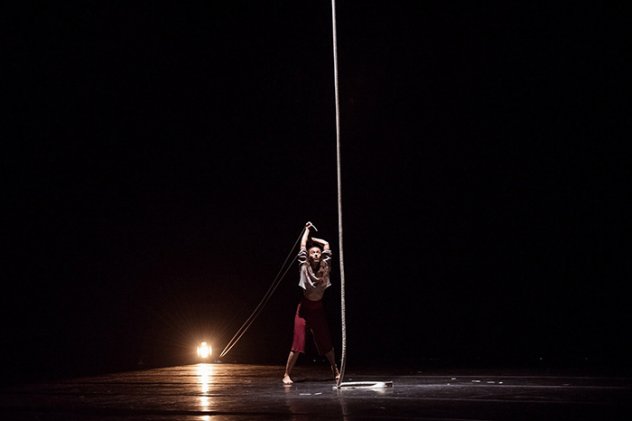 San lika kojeg utjelovljuje na sceni je oslobođenje, što postiže kretanjem u zraku s lakoćom, i pritom nailazi na prepreke, zaplićući se još više u stvarne i metaforičke klopke od užeta, sve do trenutka u kojem sama isprepletenost konopaca postaju uporišta pomoću kojih pronalazi put od istih tih restrikcija.