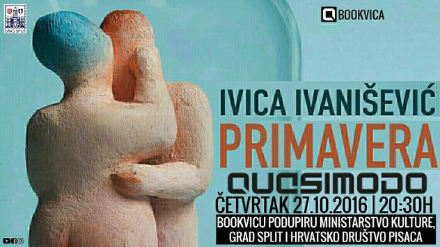 U ovotjednom izdanju književnog programa Bookvica, koje će se održati u četvrtak, 27. listopada 2016., s početkom u 20:30 sati u splitskom klubu Quasimodo (Gundulićeva 26a/II) družit ćemo se sa splitskim autorom – novinarom, scenaristom, romanopiscem, književnim kritičarom, ukratko, kako sam kaže: piscem opće prakse – IVICOM IVANIŠEVIĆEM, koji će tom prilikom premijerno predstaviti svoj novi roman „Primavera“ (Hena.com, 2016.).