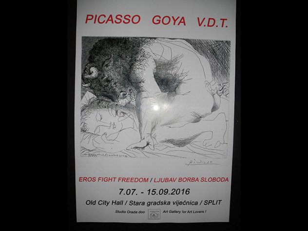 U Staroj gradskoj vijećnici na Pjaci pogledajte izložbu "Eros-Fight-Freedom" Picassa i Goye svaki dan od 10 - 13h i od 17-22h. Izložba je otvorena do 15.09.2016.