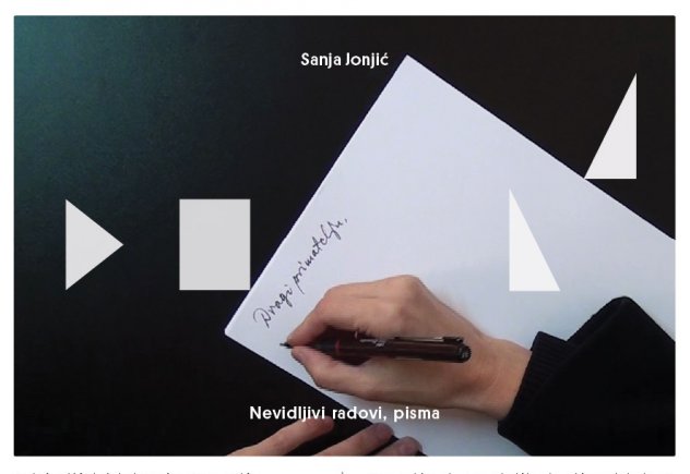 Rad Sanje Jonjić „Nevidljivi radovi, pisma“ u osnovi je akcija pisanja pisama, u kojoj se autorica obraća svojoj potencijalnoj publici na pomalo anakron način za današnje prevladavajuće oblike komunikacije; ona naime rukom piše pisma za svakog primatelja ponaosob i šalje ih poštom. U svakom pismu autorica nastoji preispitati, artikulirati i objasniti (prvenstveno primateljima a zatim i samoj sebi) mučnu temu za svakog umjetnika: razloge odustajanja od umjetnosti i razloge svoje autorske nevidljivosti. U svakom pismu iznova nastoji iznaći nove riječi za svoju odsutnost, šutnju, nemoć, poricanje, raskid, odustajanje, iščeznuće.