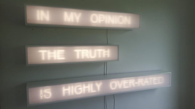 Na tragu suvremenog Device Arta, Lordan u Salonu Galić kao osnovno sredstvo istraživanja koncepta istine vješto koristi interaktivne tehnološke naprave, pneumatske strojeve i video tehniku….Smatrajući kako nas društvo u kojem živimo često namjerno navodi na onu verziju (ne)istine koja najviše odgovara onom tko ju prezentira, ciljanim odabirom korištene tehnologije Lordan zapravo inzistira na vlastitom neuplitanju: posjetitelja prepušta na samostalno istraživanje postavljene problematike. Možemo li zaista spoznati istinsku narav naizgled jednostavnih elemenata predstavljene prostorne instalacije?