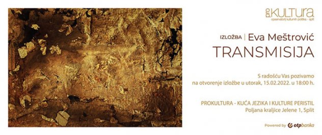 U utorak, 15. veljače 2022. s početkom u 18:00 sati, u prostoru Prokulture biti će otvorena izložba "Transmisija" mlade autorice Eve Meštrović, magistrice primjenjene umjetnosti iz Splita s trenutnim boravištem u Rijeci. Izložbu će otvoriti poznata splitska umjetnica Karin Grenc, a sama izložba će trajati do 2. ožujka 2022. Izložena djela, odabrana selekcijom same autorice, dio su ciklusa na kojem je radila pune četiri godine. Po završetku srednje škole Likovnih umjetnosti u Splitu, Eva Meštrović je provela godinu dana u Likovnoj radionici narodnog univerziteta u Vranju, pripremajući se za akademiju, kod mag. art. Vesne Marinković Stanković. 2014. upisuje Akademiju primijenjenih umjetnosti u Rijeci na kojoj je diplomirala 2020. u klasi red. prof. Siniše Majkusa.
