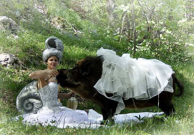 Opetovana tema transformacije ponavlja se kod Čekade više puta, kao da umjetnica, svjesno ili nesvjesno, pokušava pobjeći u vlastiti izmaštani svijet koji ima potpuno drugačije zakonitosti od ovog stvarnog kojeg dijelimo s njom, bježeći tako u prirodu transformirajući se u puža te iscenirajući piknik s veprom, kao u performansu “The picnic”, ili čak u smrt, kao u performansu “Post mortem high fashion”, uvijek sa dozom humora i autoironije, te pomnom pažnjom za svaki detalj kostimografije i scenografije. Nameće se zaključak da djelomično pokušava pobjeći od onih likova iz Muškog kutka s početka ovog teksta, koji sami sebe nazivaju šovinistima i time se očigledno ponose, a ja bih zaista više voljela da su njeni maštoviti i idilični umjetnički svjetovi stvarni, a da ova stvarnost u kojoj takvi ljudi postoje i siju mržnju prema svemu drugom i drugačijem, nije stvarna.