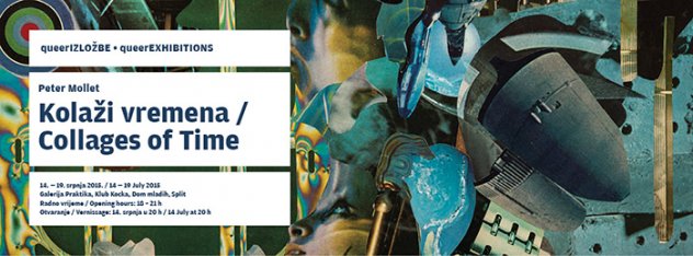 U sklopu ciklusa queerIZLOŽBE, u utorak 14. srpnja u 20 h, u Galeriji Praktika u Domu mladih otvara se izložba Petera Molleta pod nazivom Kolaži vremena. Djelujući od šezdesetih do devedestih godina prošlog stoljeća autor je pretežno radio u tehnici kolaža koristeći isječke iz tiska svog vremena. Kompozicije na granici figuralnog i apstraktnog tako otkrivaju jednu individualnu sliku vremena, sliku koju je autor odlučio predstaviti te kojoj ne nedostaje i pogleda uvjetovanog autorovim seksualnim opredjeljenjem. Postavljanjem izložbe švicarskog autora koji je živio i djelovao u Kelnu queerANarchive želi otvoriti pitanje osobnih arhiva starijih queer osoba kod nas. Izložba će biti otvorena do 19. srpnja te se može razgledati svakim danom od 18 do 21 h.