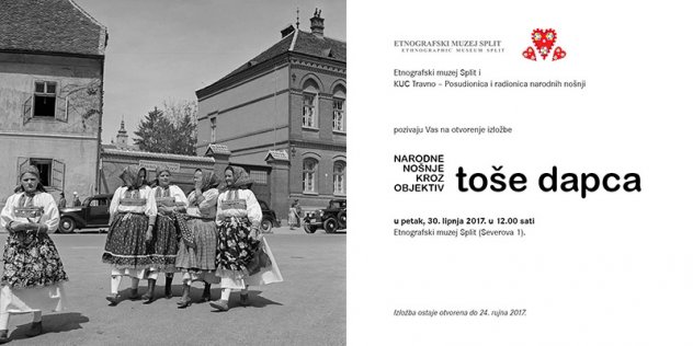 U Etnografskom muzeju Split u petak, 30. lipnja 2017. u 12 h otvara se izložba fotografija „Narodne nošnje kroz objektiv Toše Dapca“.