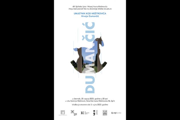 U vrtu Galerije Meštrović, 20. srpnja s početkom u 20 h bit će otvorena izložba radova akademskog kipara Hrvoja Dumančića. Riječ je o programu koji Muzeji Ivana Meštrovića organiziraju tradicionalno u sklopu Splitskog ljeta u okviru ciklusa „Umjetnik kod Meštrovića“, a u programu otvaranja sudjeluju ravnateljica Muzeja Ivana Meštrovića Sandra Grčić Budimir, autorica izložbe i teksta Vesna Bulić Baketić te sam autor akademski kipar i autor likovnog postava izložbe Hrvoje Dumančić.