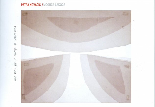 Splitska kiparica Petra Kovačić u utorak, 21. siječnja u 20 sati otvara u salonu Galić u Marmontovoj ulici svoju samostalnu izložbu Moguća lakoća, na kojoj će izložiti četiri rada postavljena u zasebne prostorije, koji su - kako stoji u katalogu - zamišljeni "s namjerom da komuniciraju s unaprijed zadanim oblikom prostora". Ovom izložbom Petra Kovačić predstavlja se kao multimedijalna umjetnica "koja je napravila odmak od tradicionalnog, iskušavajući i problematizirajući odnos prostora, promatrača i samog djela".