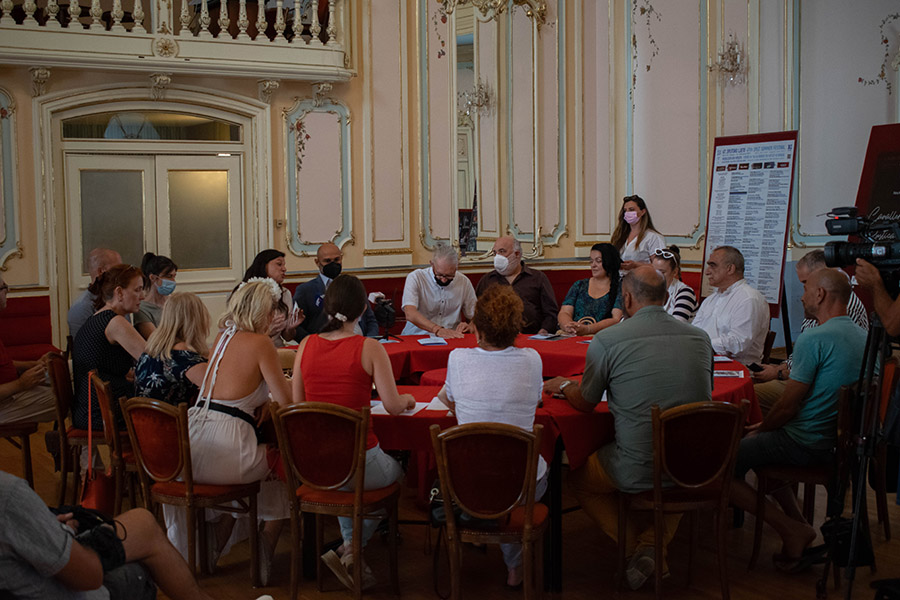 „Plan je da na sezonu ovom naslovu pridružimo i I pagliacci pa zajedno izvodimo te dvije jednočinke kako je u opernom svijetu uvriježeno.“ kazao je, između ostalog, na početku ravnatelj Splitskog ljeta Srećko Šestan. „Sretan sam što ovako vrijedno operno djelo imamo priliku izvesti nakon duge pauze na koju smo bili prisiljeni zbog epidemioloških uvjeta“, kazao je ravnatelj Opere HNK Split Jure Bučević. „Dirigirao sam izvedbama Cavallerije... pet puta u inozemstvu, jednom u Osijeku i izuzetno mi je drago što je preda mnom i ova splitska premijera. Ovo mi je zasigurno najbolja podjela do sad iako sam i do sada imao odlične podjele. Kristina Kolar dobro poznaje ovu ulogu, za nju je dobila i našu najvrjedniju opernu nagradu Milka Trnina. Max Jota je sazreo kao tenor i u naponu je svoje snage. U Splitu ga, iz Rigoletta i Lombardijaca, poznajemo kao lirskog tenora, a sad upoznajemo i kao odličnog dramskog tenora. Gospodin Gavanelli je doajen ove predstave, pjevao ju je, između ostalog i u finalu filma Kum 3, ali i na najvećim svjetskim opernim pozornicama, Metropolitanu, Bečkoj državnoj operi, veronskoj Areni. Iako je jednočinka, meni je ovo jedna od najtežih opera za dirigiranje, orkestracija je takva da je jako teško usuglasiti sve instrumente i glasove. No, orkestar je odličan, popunjen brojnim mladim glazbenicima, mahom sa splitske Umjetničke akademije, a zbor odnedavno vodi sjajni mladi zborovođa maestro Veton Marevci koji je popunio zbor i ojačao ga kao ansambl. Pri tom, Jelena Bosančić u režiji se drži partiture i glazbe i ova me suradnja izuzetno veseli“ istaknuo je dirigent Ivo Lipanović. „Zahvalna sam na prekrasnom castu. Oni su me podržali u ideji da se odmaknemo od tipične operne geste, da izričaj bude dramski, da i u emociji iznesu tu glazbu onako kako ju je Mascagni napisao. Scenografija je takva da ne sakriva Peristil, scenograf Bakotić i ja nazvali smo je 'nevidljivi grad'. To je svojevrsna scenografija-kutija koja daje osnovne nužne naznake sicilijanskog sela ali ne smeta jedinstvenoj vizuri Peristila, ne sakriva je. Kostimografkinja Sonja Obradović napravila je divne kostime. Sve to obogatile su video-produkcije Darka Škrobonje, svojevrsne flash-backove na kojima vidimo protagoniste ovog ljubavnog četverokuta u vremenima kad su bili djeca“ kazala je redateljica Jelena Bosančić. „Predivan orkestar i zbor, kolege solisti stvorili su sjajnu atmosferu koja je izuzetno bitna. Nisu u pjevanju bitne samo glasnice, cijelo naše tijelo sudjeluje, emocije su izuzetno važne a s ovakvom je ekipom sve puno lakše i kvalitetnije“, naglasila je nacionalna prvakinja sopranistica Kristina Kolar koja tumači ulogu Santuzze. Brazilski tenor Max Jota, solist Opere HNK Split, dobro je poznat pjevač splitskoj publici. „Ulogom Turiddua debitirao sam kao vrlo mlad i neiskusan pjevač u rodnom Brazilu. Ovo je snažna i vrlo inenzivna opera i ja sam jako sretan što se nalazim ovdje u vremenima kad se pokušavamo vratiti životu nakon Covida“, kazao je Jota. „Cavalleria rusticana je za nas koji pjevamo tehnički jako teška budući da treba kontrolirati njene tehničke i emotivne aspekte. Težak je to zadatak za dirigenta i redateljicu. Zbog toga vjerujem kako je pred nama zadivljujuća i vrlo lijepa predstava“. Bariton Paolo Gavanelli, koji tumači ulogu Alfija, pjevač je impresivne biografije. Sve baritonske uloge ne samo verdijanskog repertoara pjevao je na najvećim opernim pozornicama, pa je tako Alfija tumačio I na daskama njujorškog Metropolitana, veronske Arene, bečke Staatsopere, na festivalu u Riminiju pod ravnanjem maestra Riccarda Mutija. „Nisam ovu ulogu pjevao često, ali pjevao sam je u važnim teatrima. Rođen sam na Siciliji, što nije nebitno, a pored pomenutih velikih pozornica pjevao sam ulogu Alfija u finalu filma Kum 3 pod ravnanjem maestra Copolle, oca filmskog redatelja. Redateljica je, po mom mišljenju, napravila odličan posao. Kad mi je rekla da želi napraviti film, a ne operu, složio sam se s njom. Želim zahvaliti i maestru Lišpanoviću samo s dvije riječi: 'on zna'. Prvi put sam u Splitu i jako sam sretan zbog toga. Grad je predivan a svi u kazalištu su mi poput obitelji.“