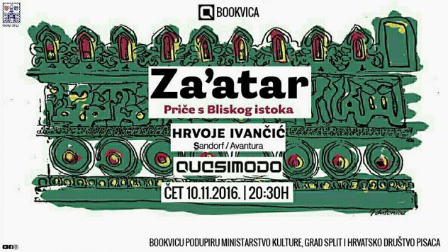 Novo izdanje književnog programa Bookvica, koje će se održati u četvrtak, 10. studenog 2016., s početkom u 20:30 sati u splitskom klubu Quasimodo (Gundulićeva 26a/II), u goste dovodi poznatog putopisca i autora brojnih reportaža HRVOJA IVANČIĆA, koji će ovom prilikom publici predstaviti svoju zbirku kratkih priča „Za'atar: Priče s Bliskog istoka“ (Sandorf, 2016.), nadahnutu putovanjima i iskustvima stečenim na bliskoistočnim prostorima.