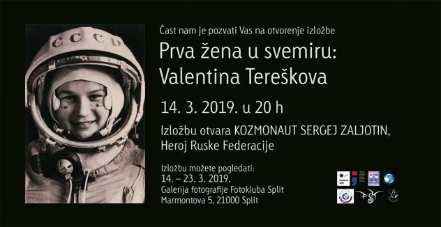 U četvrtak, 14. ožujka 2019. u 20 sati u Galeriji fotografije Fotokluba Split, Marmontova 5 otvorit će se izložba "Prva žena u svemiru: Valentina Tereškova". Izložbu će otvorit kozmonaut Sergej Zaljotin, Heroj Ruske Federacije.