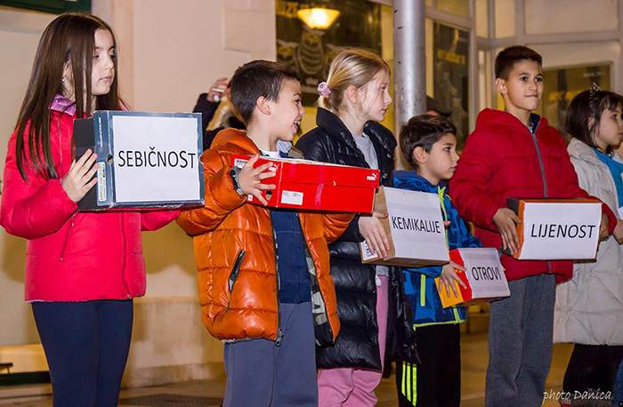 Iako često neshvatljiv i odraslima manje vrijedan umjetnički izričaj, djeci neopterećenoj stereotipima i sudovima o tome kao bi umjetnost trebala izgledati, performans je jasan i potreban umjetnički oblik kojim se može utjecati na društvo. Navedeno su potvrdili i drugaši OŠ Spinut koji su na Noći muzeja ispred Salona Galić izveli ekološki osviješten performans po uzoru na splitkog umjetnika.