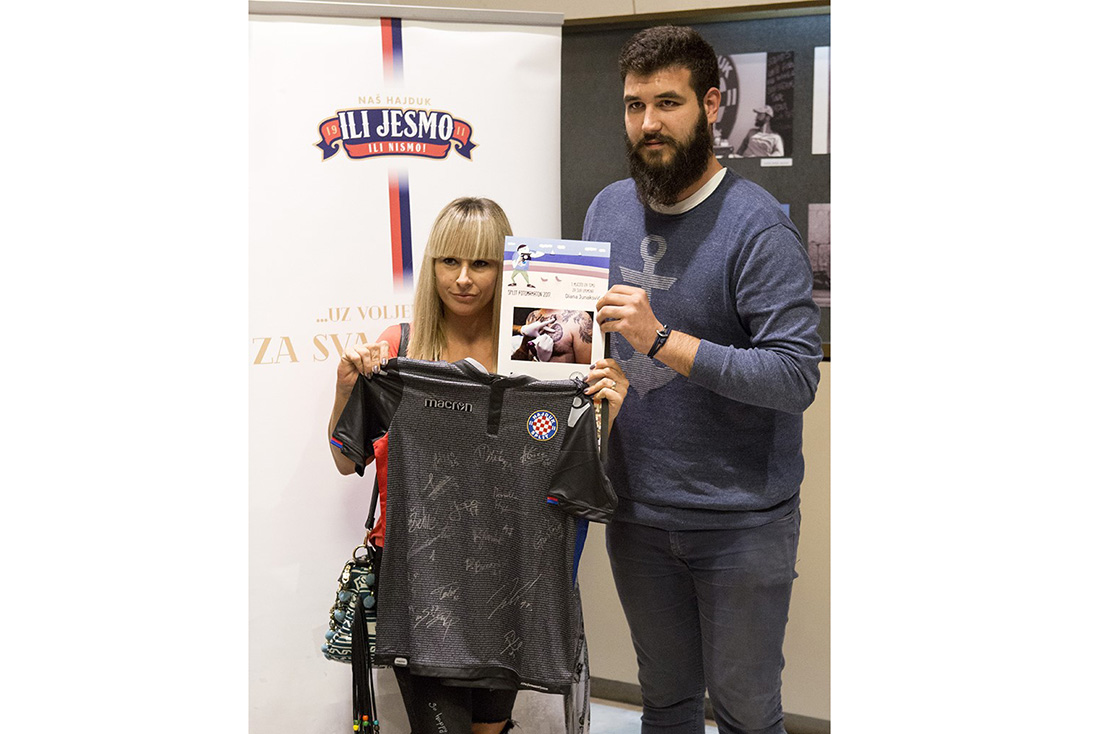 Diani Junaković pobjednici teme Za sva vrimena! nagradu je uručio Ivan Baričević iz Našeg Hajduka