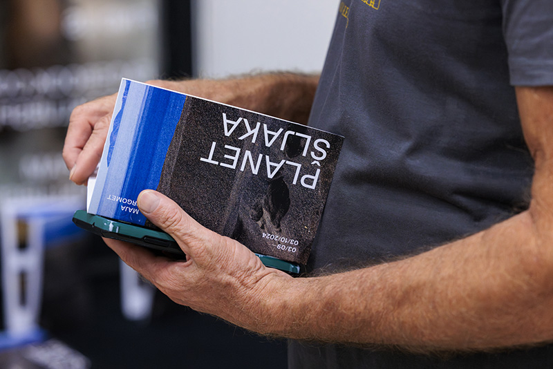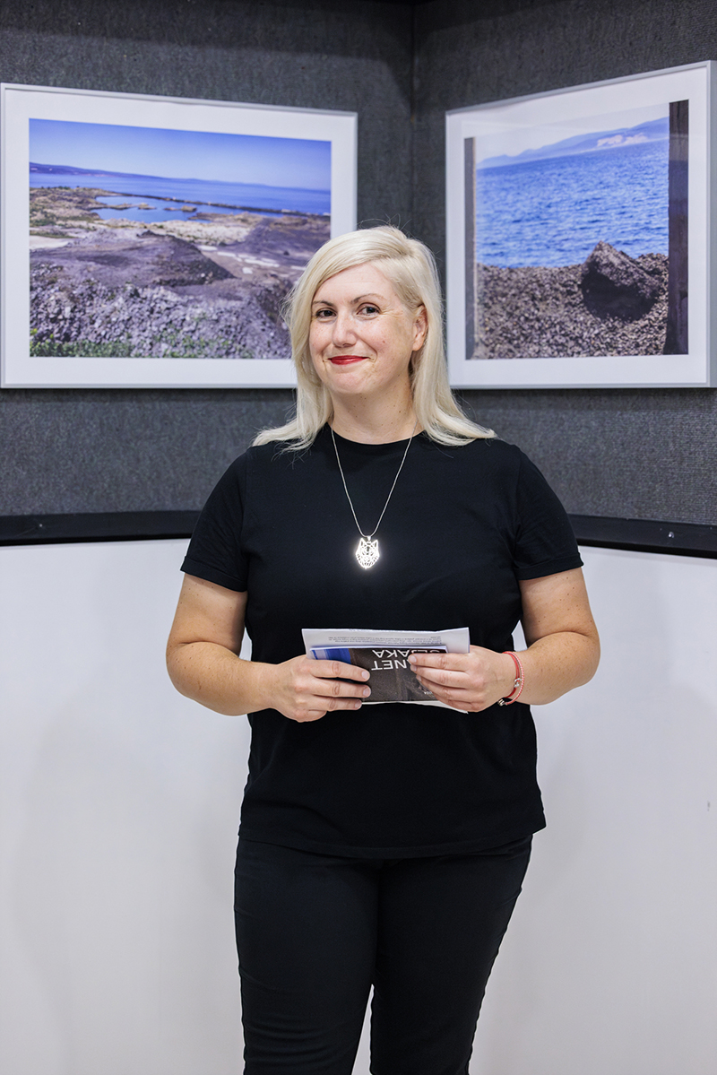Autorica izložbe, Maja Prgomet ispričala je kako je šljaku krenula fotografirati još 2008. godine, i kako je kroz više od 15 godina snimila nekoliko tisuća fotografija, od čega je za izložbu napravila izbor od njih 28. Skrenula je pozornost da je problem nesaniranog tvorničkog otpada i dalje goruće pitanje za stanovništvo Dugoga Rata te je pozdravila dolazak načelnika općine, Tonća Bauka i saborske zastupnice Marijane Puljak, koji su u svom političkom angažmanu u više navrata apelirali na hitno rješavanje problema. Isto tako je istaknula da su za nju osobno, u umjetničkom i fotografskom smislu, prizori šljake predstavljali bijeg u drugu dimenziju, na drugi planet i isključivanje od svakodnevice. U kontekstu toga, dodala je, dirljivo je i zadivljujuće da u tim brdima opasnog i po zdravlje štetnog otpada, i dalje izbija život – raste cvijeće, brnistra, odmaraju galebovi i Jadran blista u svom plavetnilu. Za kraj je izrazila nadu i želju da se pitanje nezbrinutog tvorničkog otpada čim prije riješi i da Dugoraćani ne moraju više strahovati za svoje zdravlje i budućnost svoje djece.