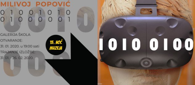 Splitski kipar i animator svjetskog glasa Milivoj Popović priprema poslasticu u obliku VR izložbe naziva "01001010 01000001" (JA u binarnom kodu) za sve posjetitelje Noći muzeja i Galerije Škola. Milivoj je suosnivač višestruko nagrađivanog Studija za Digitalnu Umjetnost Lemonade3d, sadašnji Prime Render studio koji uz 70 međunarodnih nagrada broji i OSCAR kvalificirajuću nagradu ANIMATED EYE na Aspen Shortsfest u Coloradu, USA, kao i Posebno Priznanje Žirija na ANNECY Film Fesativalu (najveći festival za animirane filmove u svijetu). Kao asistent drži kolegij "Kiparstvo u digitalnom mediju 1 i 2" na Umjetničkoj akademiji Sveučilišta u Splitu. Iz njegovih istraživanja i eksperimenata proizašla je ideja o kiparskoj izložbi kompletno izvednoj i prezentiranoj kroz Virtualnu stvarnost.