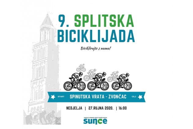 Ovogodišnja, 9. Splitska biciklijada u organizaciji Udruge Sunce Split kreće u nedjelju, 27. rujna 2020. u 16.00 sati, vozi se od Spinutskih vrata preko Marjana, a cilj je na Zvončacu.