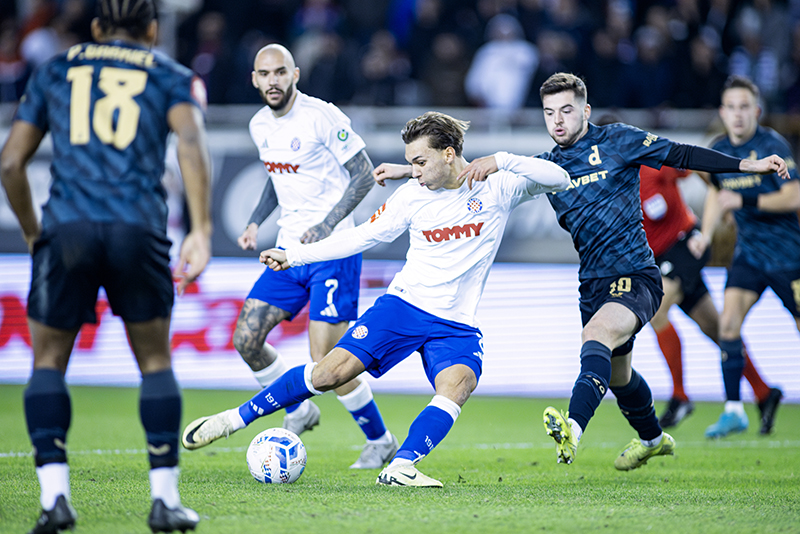 Nogometaši Hajduka u susretu 15. kola HNL-a na Poljudu pobijedili Dinamo s 1-0 (0-0).