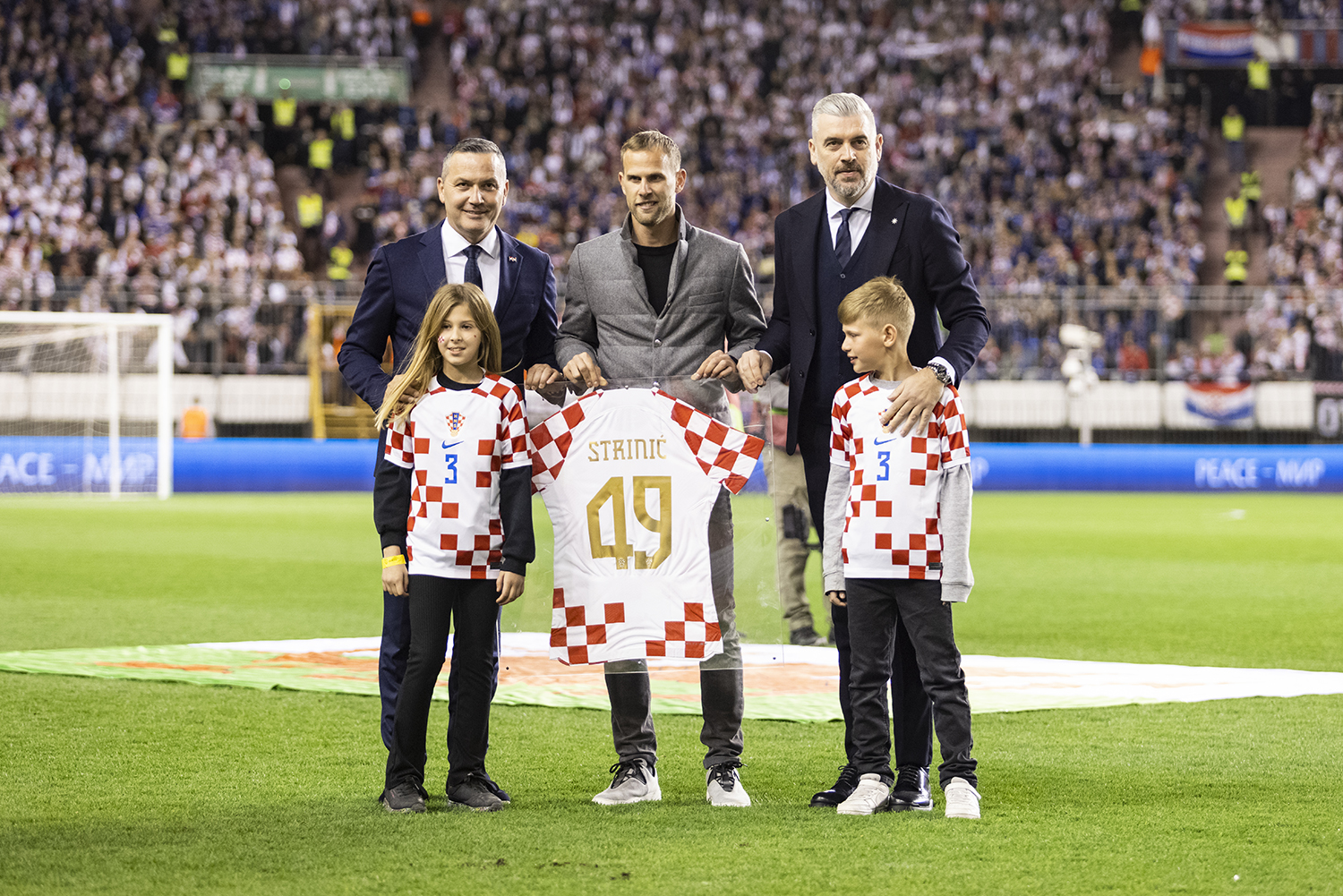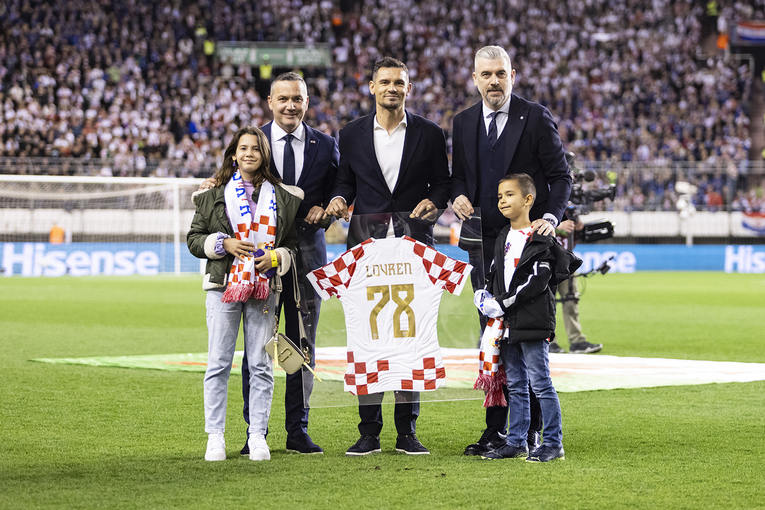 Dejan Lovren i Ivan Strinić oprostili su se od hrvatske reprezentacije na Poljudu gdje su im uručeni prigodni dresovi.