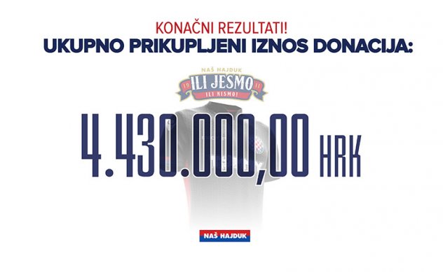U akciji "Ili jesmo ili nismo" prikupljeno je ukupno 4,43 milijuna kuna, a na trećem dresu u sljedećoj sezoni naći će se 2.200x donatora koji su sudjelovali s 1.911 i više kuna.