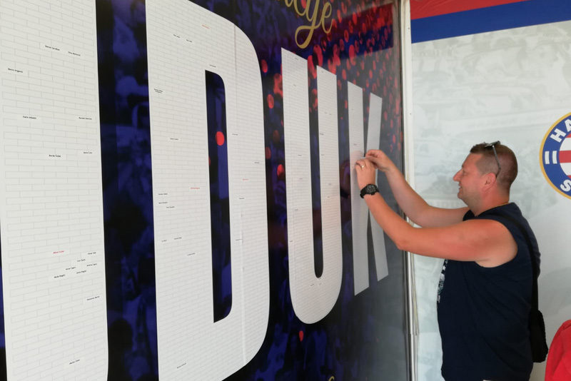 Navijači su odlično primili ovaj simpatični poklon, pa je tako velik broj starih i novih sudionika projekta „Za sva vrimena“ nalijepilo svoje ime na veliki natpis u Odjelu za članstvo.