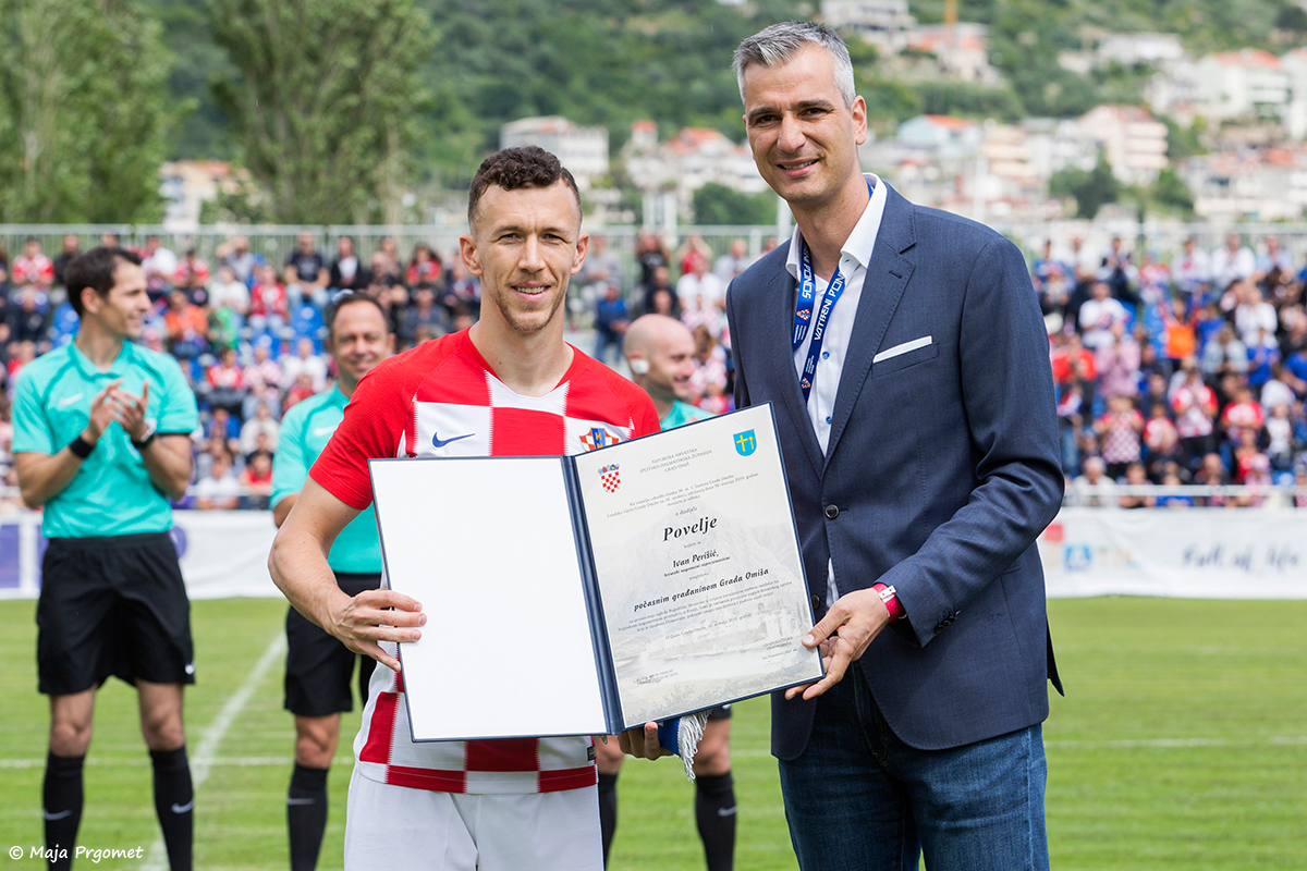 Uoči utakmice gradonačelnik Ivo Tomasović uručio je Perišiću povelju počasnog građanina Omiša.