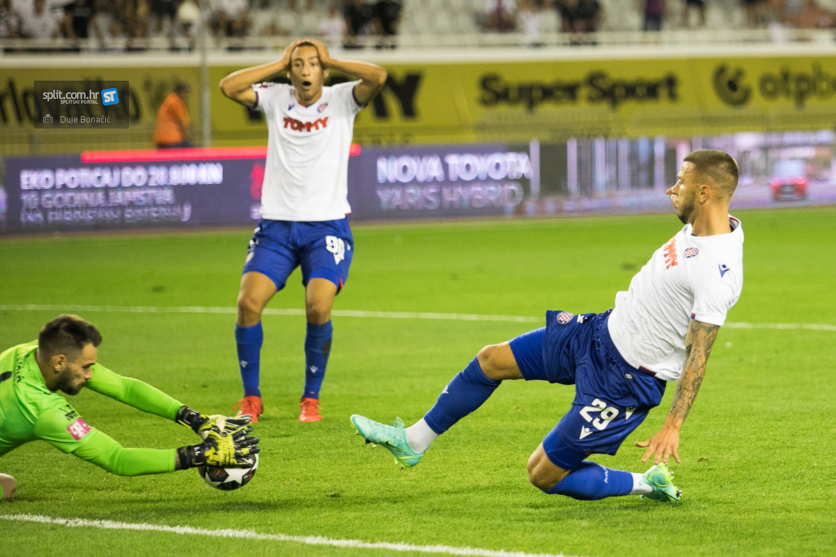 NK Osijek pobijedio je Hajduk na Poljudu 2:1 u drugom kolu 1. HNL pred 9486 gledatelja. U sjajnoj utakmici Hajduk je poveo u 63. minuti pogotkom Marka Livaje, a onda se Osijek vratio u igru pogotkom Marija Jurčevića u 66. minuti, a do pobjede su stigli pogotkom Marina Pilja u 87. minuti poslije velikog kiksa Hajdukovog vratara i kapetana Lovre Kalinića.