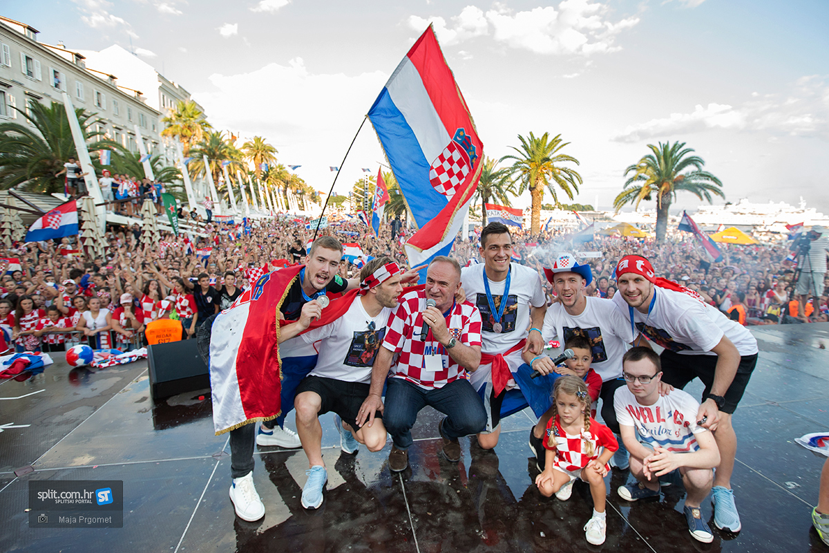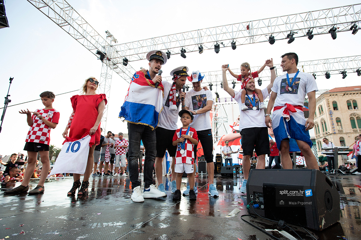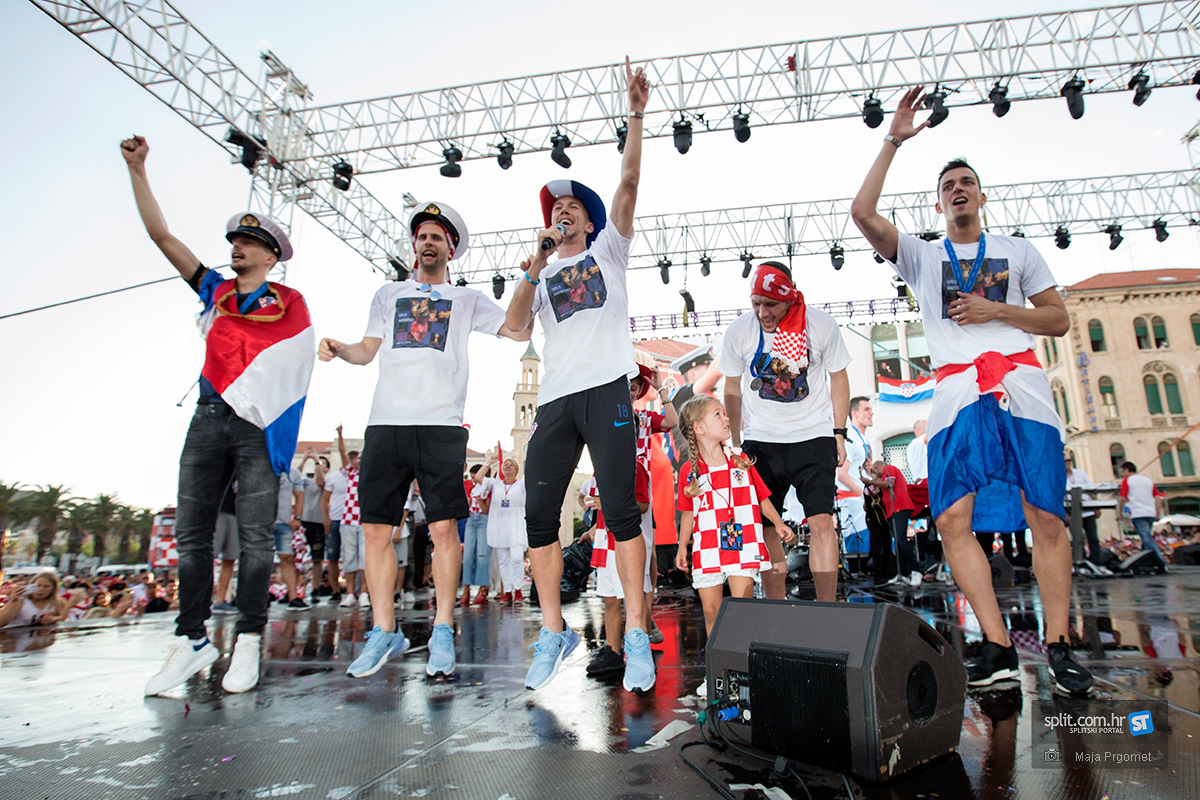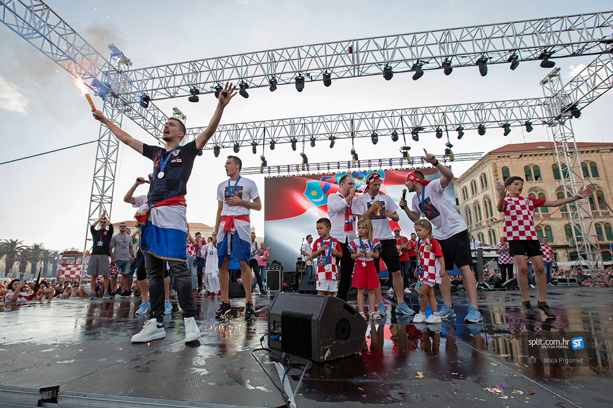 Split je na Rivi priredio spektakularan doček za petoricu reprezentativaca: Antu Rebića, Ivana Strinića, Ivana Perišića, Lovru Kalinića i Filipa Bradarića.