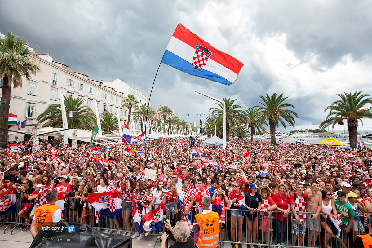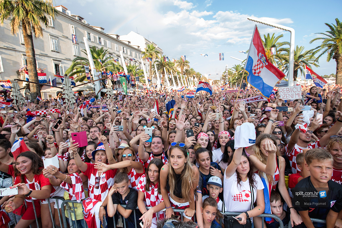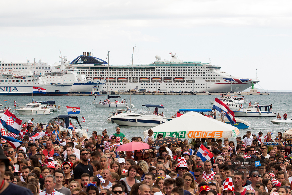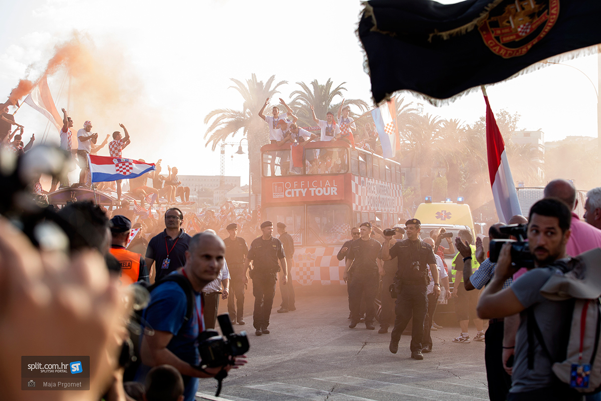 Split je na Rivi priredio spektakularan doček za petoricu reprezentativaca: Antu Rebića, Ivana Strinića, Ivana Perišića, Lovru Kalinića i Filipa Bradarića.