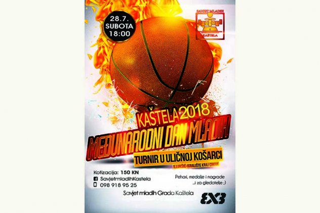 Prijavite se i sudjelujte na turniru u uličnoj košarci u povodu Međunarodnog dana mladih koji će se održati u subotu 28. srpnja 2018. godine s početkom u 18:00 sati na betonskom igralištu kraj crkve u Kaštel Lukšiću.