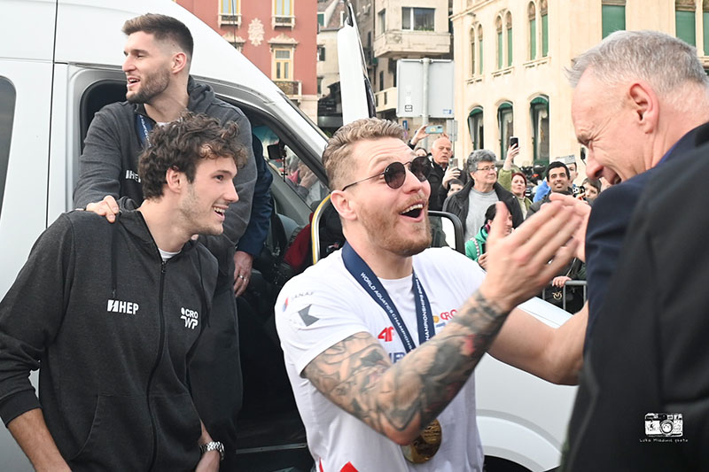 Ispred tisuća navijača na pozornicu su se popeli vaterpolisti Mate Anić, Rino Burić, Zvonimir Butić, Ante Vukičević,Jerko Marinić Kragić, Luka Bukić (Svjetsko prvenstvo propustio zbog operacije kile) i članovi stručnog stožera liječnik Dinko Pivalica, pomoćni trener Jure Marelja, trener golmana Renco Posinković, predsjednik Hrvatskog vaterpolo saveza Mladen Drnasin...