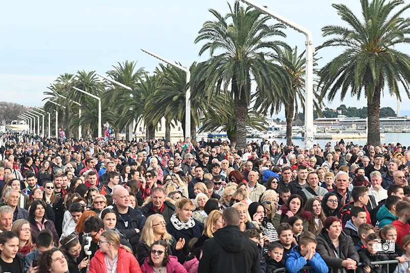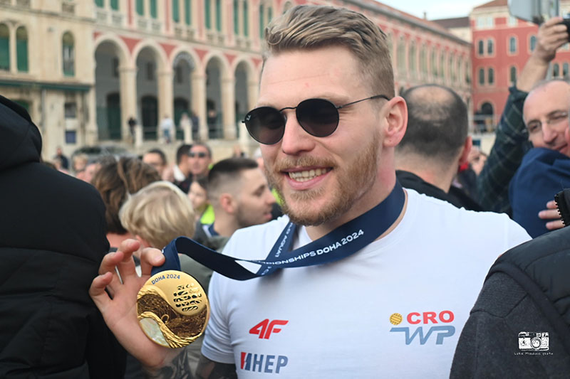 Prepuna splitska Riva dočekala je u ponedjeljak poslijepodne hrvatske vaterpoliste koji su na Svjetskom prvenstvu u Dohi osvojili zlato.