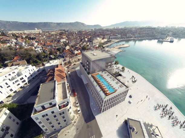 Krenulo je rušenje stare zgrade, a Split bi nakon 20-ak mjeseci radova na lokaciji između Matejuške i Zapadne obale trebao dobiti novi hotel "Ambasador". Na mjestu bivšeg doma JNA izgradit će se boutique hotel s četiri zvjezdice i bazenom na vrhu trećeg kata, a evo kako bi on možda prema vizualizacijama trebao izgledati. No tko zna, možda investitor priprema i neko iznenađenje.