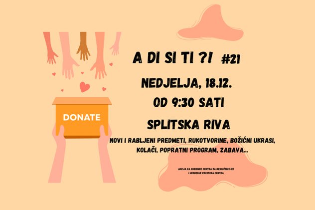 U organizaciji udruge MoSt dvadeset i prva humanitarna akcija A di si ti?! održat će se u nedjelju, 18.12.2022. godine, na splitskoj Rivi s početkom u 9:30 sati.