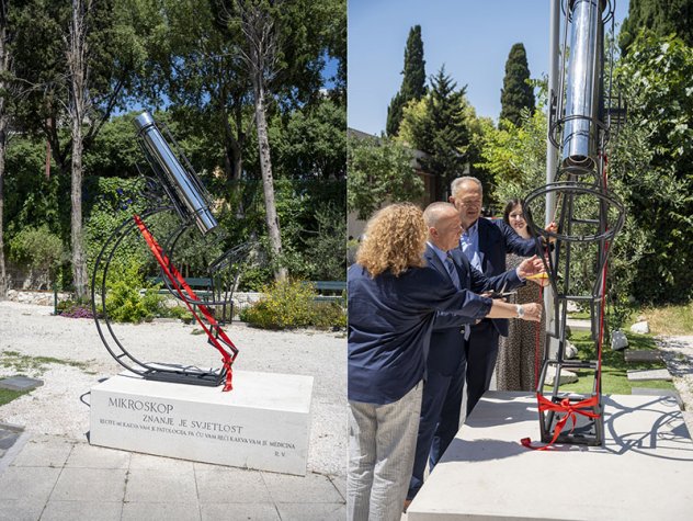 Pred Kliničkim zavodom za patologiju, sudsku medicinu i citologiju Kliničkog bolničkog centra Split svečano je otvorena skulptura Mikroskop. Ovaj spomenik testament je jednom od najvažnijih izuma u povijesti čovječanstva, postavljen u trenutku kada je splitska patologija zakoračila u novu eru potpuno digitalne patohistološke dijagnostike.