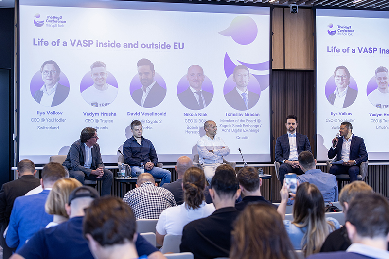 Konferencija je zaključena panelom pod nazivom "Život VASP-a unutar i izvan EU", s uvidima Ilye Volkova iz tvrtke YouHodler (Švicarska), Vadym Hrushe iz tvrtke Trustee (Litva), Davida Veselinovića iz tvrtke Crypto 12 (Srbija) i Nikole Klaka iz tvrtke BCX-a (Bosna i Hercegovina), koju je moderirao Tomislav Gračan iz Zagrebačke burze (ZSE) i Adria Digital Exchange. Hrusha je napomenuo kako je tržište pružatelja usluga povezanih s virtualnom imovinom u Litvi procvalo, ali je ipak nedovoljno regulirano, dok su Veselinović i Klak raspravljali o regulatornim izazovima i uspjesima u svojim regijama.