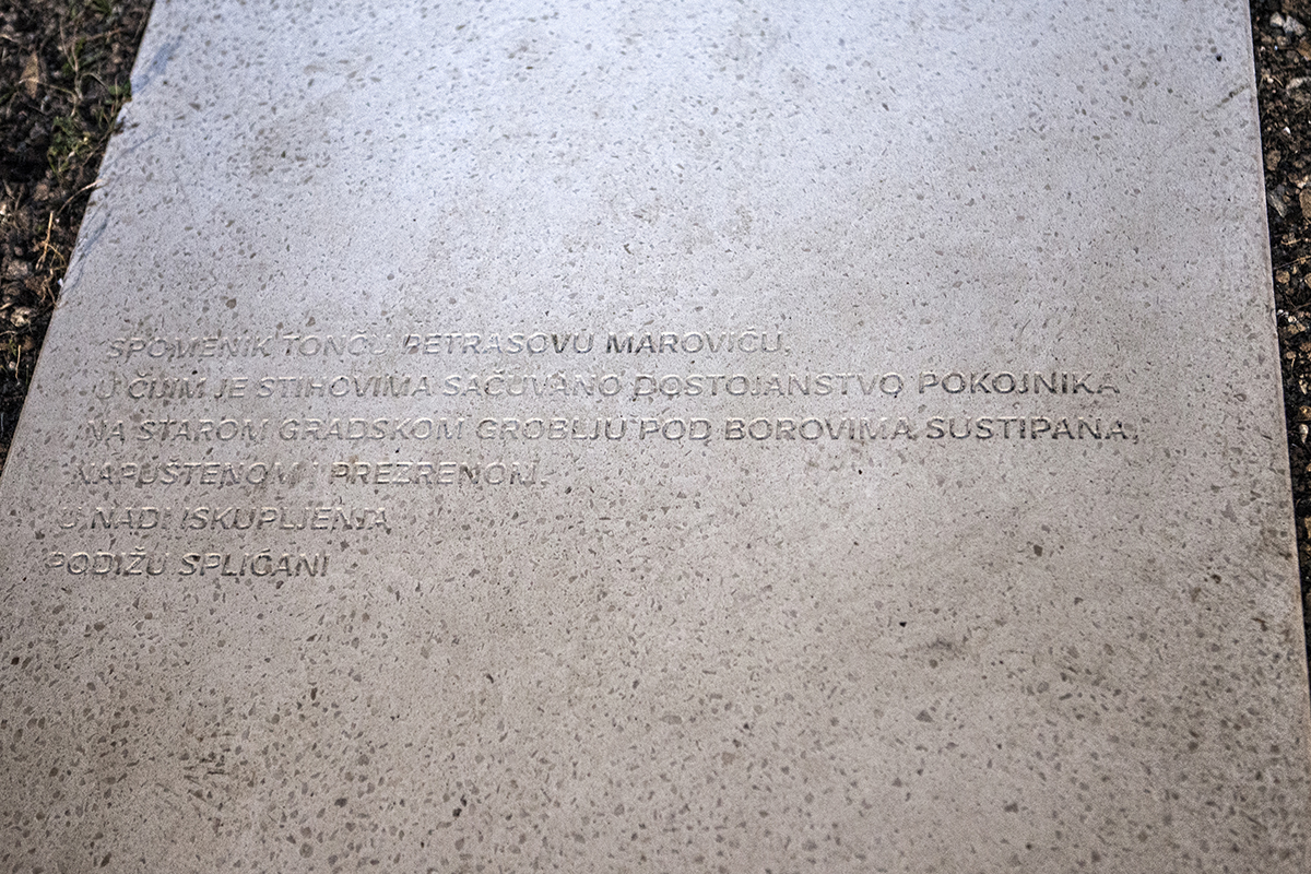 U ponedjeljak, 15. srpnja 2019. pred ulazom u staro splitsko groblje na Sustipanu održana je svečanost otkrivanja spomenika velikanu hrvatskog pjesništva Tonču Petrasovu Maroviću.