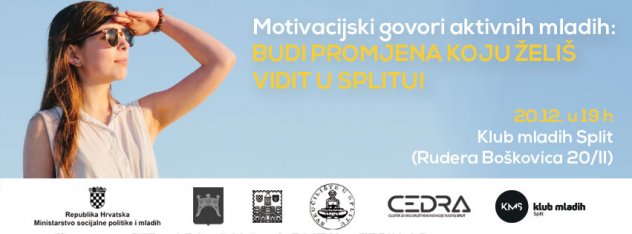 Peto izdanje motivacijskih govora aktivnih mladih "Budi promjena koju želiš vidit u Splitu"! održat će se 20.12.2016. u 19 h u Klubu mladih Split