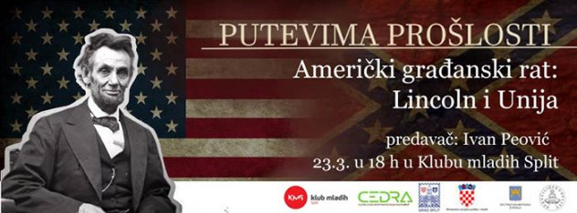 U srijedu, 23.3., s početkom u 18 h očekuje nas još jedno predavanje u sklopu ciklusa "Putevima prošlosti". Ovog puta izlagat će student povijesti Ivan Peović, koji će održati predavanje pod nazivom "Američki građanski rat: Lincoln i Unija".