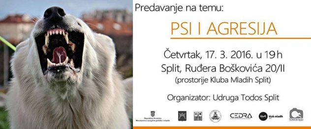 Ako želite dobiti odgovore na ova i mnoga druga pitanja u vezi agresivnosti pasa, pridružite nam se na još jednom zanimljivom predavanju članova udruge Todos Split! u četvrtak, 17. 3., u 19 h u Klubu mladih Split (Ruđera Boškovića 20/II)!