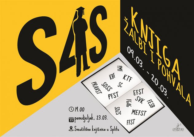 Projekt „Knjiga žalbi i pohvala“ je već tradicionalni projekt udruge S4S koji se već dvije godine za redom provodi na Sveučilištu u Splitu, a i ove godine splitski studenti će imati mogućnost na jednom mjestu zabilježiti sve što im smeta ili što smatraju vrijednim pohvale na svojim fakultetima. Novost je što se ove godine pohvale i primjedbe mogu uputiti i objektima Studentskog centra u Splitu te Sveučilišnoj knjižnici u Splitu.