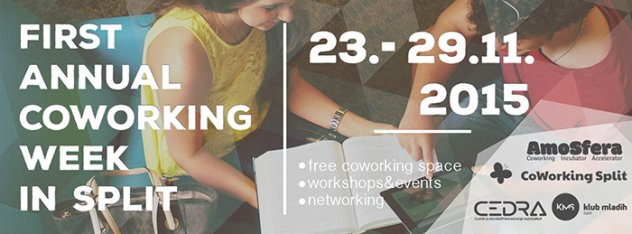 Vlasnicima malih tvrtki i nezavisnim profesionalcima na području Splita kojima je dosadio rad od kuće ili u skupom i skučenom uredskom prostoru idućeg tjedna pruža se jedinstvena prilika iskusiti kreativni svijet coworkinga. Entuzijasti iz dvaju splitskih coworking prostora, "Amosfera Coworking" i "CoWorking Split", od 23. do 29. studenog organiziraju Prvi tjedan coworkinga u Splitu, tijekom kojeg otvaraju svoja vrata svim zainteresiranima za ovakav oblik rada, a njihove usluge u tih sedam dana moći će se besplatno koristiti. Uz coworking, sudionici mogu prisustvovati i brojnim događanjima koja će se tijekom coworking tjedna svakodnevno održavati (četiri predavanja na temu coworkinga, crowdfundinga, startupa i poduzetništva, okrugli stol o coworkingu i IT meetup), a naći će se mjesta i za neformalno druženje i zabavu.