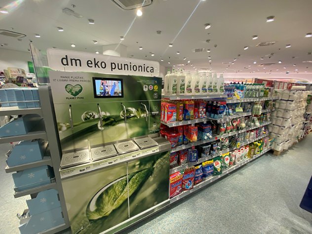U prodavaonici dm-a u trgovačkom centru City Center one Split, kupci od utorka, 26. srpnja, mogu kupovati još osvještenije, zahvaljujući dm eko punionici koja omogućuje ponovno punjenje boca Planet Pure tekućim deterdžentima.