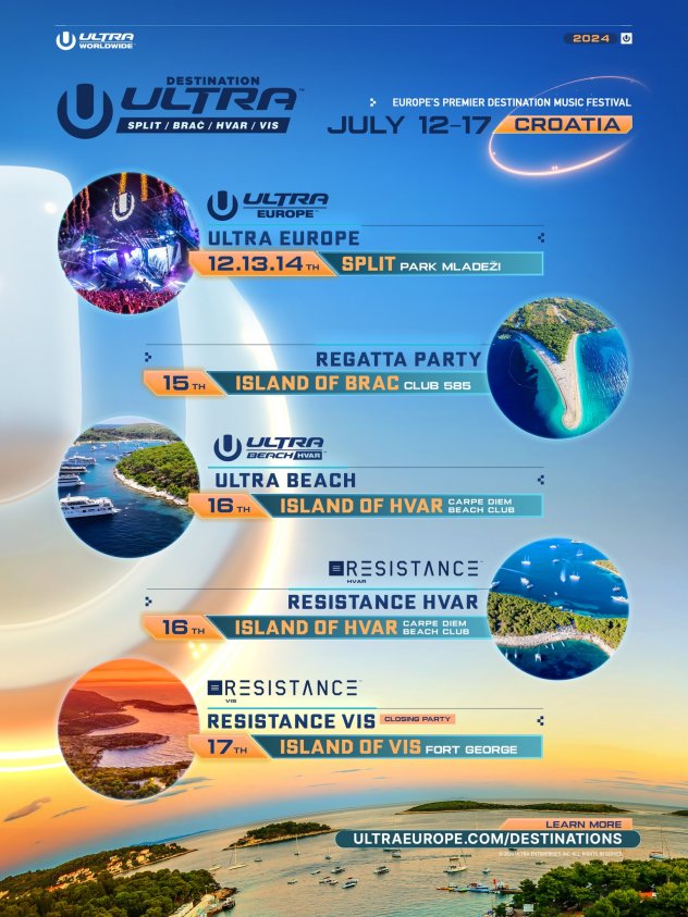 Ljeto 2024 kuca na vrata i poziva na još jednu pustolovinu života! U zemlji čiju obalu krasi više od tisuću otoka nije lako odabrati idealnu ljetnu lokaciju pa je nerijetko najbolji odabir proputovanje obalom u društvu najdražih osoba. Za one koji ove bezbrižne ljetne dane žele začiniti i neponovljivim glazbenim iskustvom, festival ULTRA Europe predstavlja najboljeg turističkog vodiča i znalca gdje se ovog ljeta spremaju najluđi provodi – riječ je o konceptu Destination ULTRA, neponovljivoj ljubavnoj vezi hrvatskih otoka i svjetske glazbe, koja traje gotovo cijelo desetljeće, a čija je posebna magija dotakla srca tisuća posjetitelja sa svih krajeva svijeta. Ovaj koncept je toliko poseban da je proglašen jedinstvenim i vodećim u svjetskoj glazbenoj industriji, a ove godine priprema idealnu kombinaciju najposebnijih doživljaja za sva čula, na tri lokacije koje uključuju čak četiri party stanice.