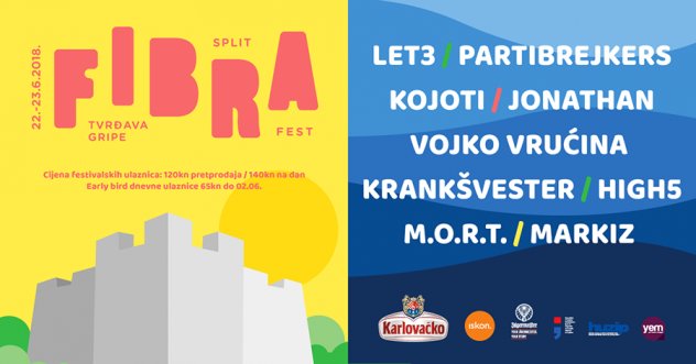 Fibra festival, novo festivalsko ime u gradu Splitu odličnom lineupu za svoje premijerno izdanje pridružuje tri nova imena! Već objavljenim izvođačima – Let3, Kojoti, Jonathan, M.O.R.T, Vojko V i High5 - pridružuju se Krankšvester, Partibrejkers i Markiz!