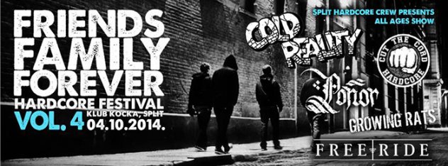 Nakon ljetne pauze, Split Hardcore Crew po 4. put organizira Friends Family Forever Fest. U subotu, 4. listopada s početkom u 21 sat u klubu Kocka (Dom mladih) STHC na jednodnevni festival undergound i DIY hardcore/punk glazbe dovode Cut The Cord, Growing Rats, Ponor, Free Ride i Cold Reality.